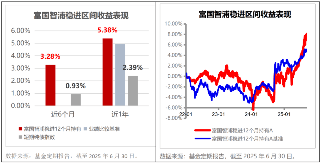 他之前也推出过相应策略的基金,叫“富国智浦稳进12个月持有期FOF”,也有公开业绩可查。截至今年6月30日,这只产品A类份额近6个月和近1年的收益分别是3.28%和5.38%,都大幅跑赢了同期的业绩基准,在低波动产品里表现非常亮眼,充分证明了张子炎在“稳健打底、适度增强”这套策略上的执行力。