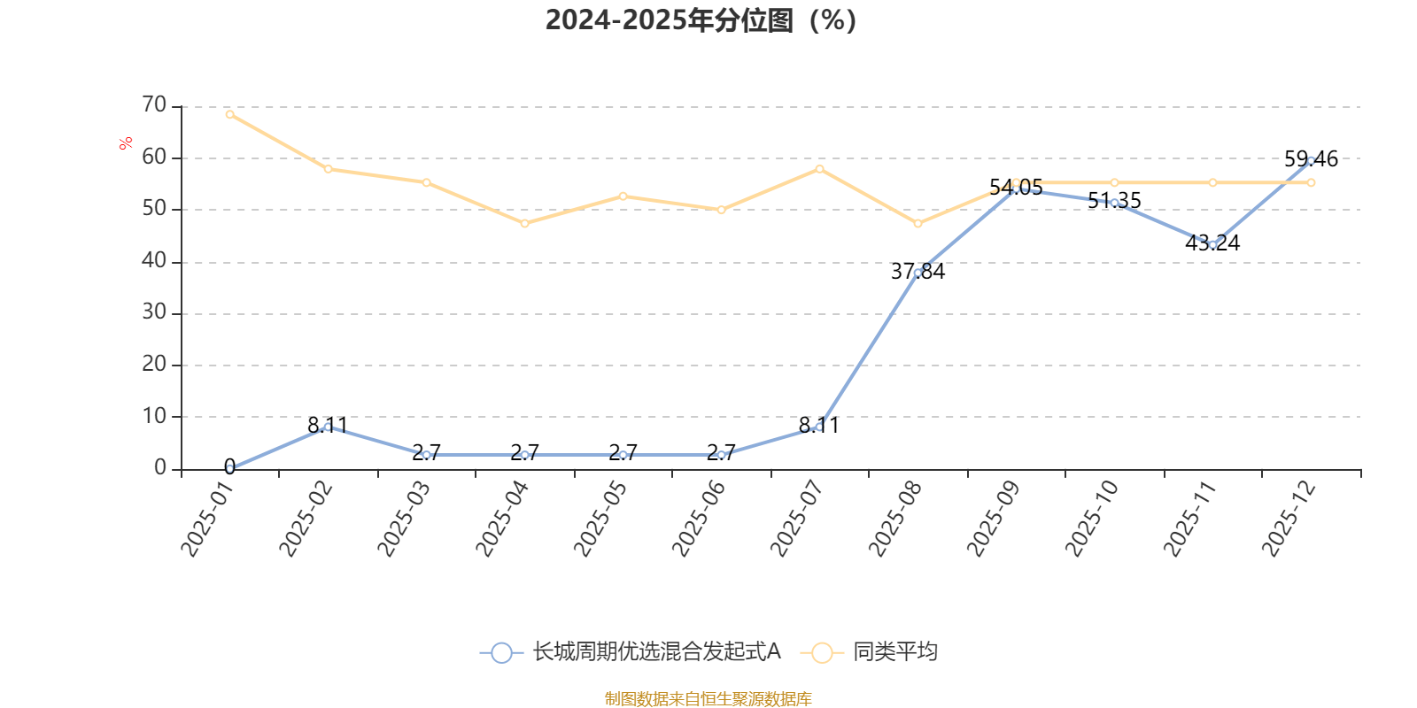 通过所选区间该基金净值增长率分位图,可以观察该基金与同类基金业绩比较情况。图为坐标原点到区间内某时点的净值增长率在同类基金中的分位数。
