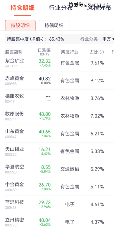 该基金前十大持仓中紫金矿业、山东黄金、天山铝业、华夏航空、中金黄金跌幅较大,前十持仓占总持仓的65.43%,基金风格偏向资源行业,但持仓并不汇集单一板块。基金净值相对跑输市场(属于资源行业混搭风格的跨市场主动型混合基金)【基金规模0.68亿元】。