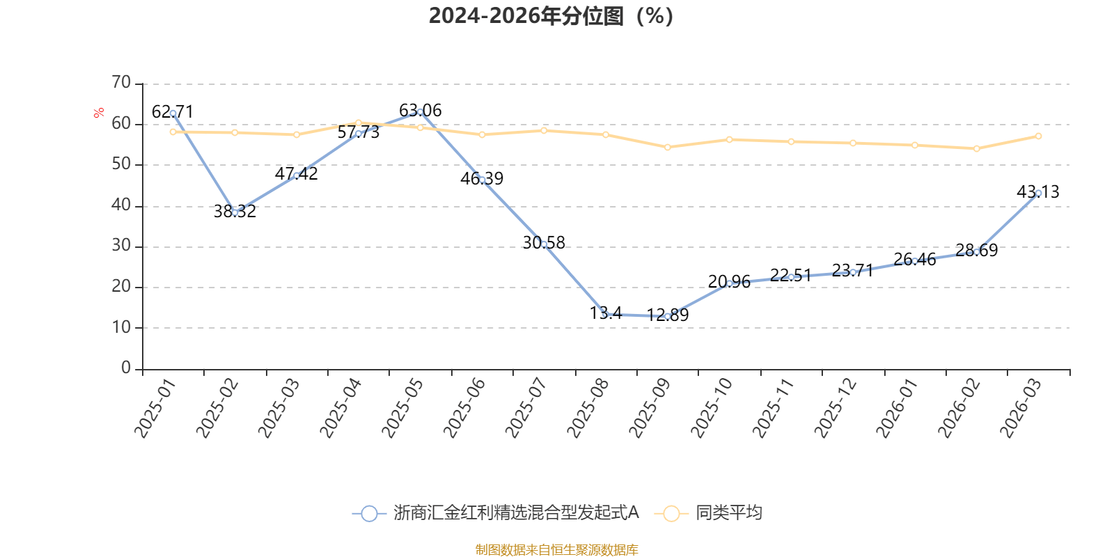 通过所选区间该基金净值增长率分位图,可以观察该基金与同类基金业绩比较情况。图为坐标原点到区间内某时点的净值增长率在同类基金中的分位数。